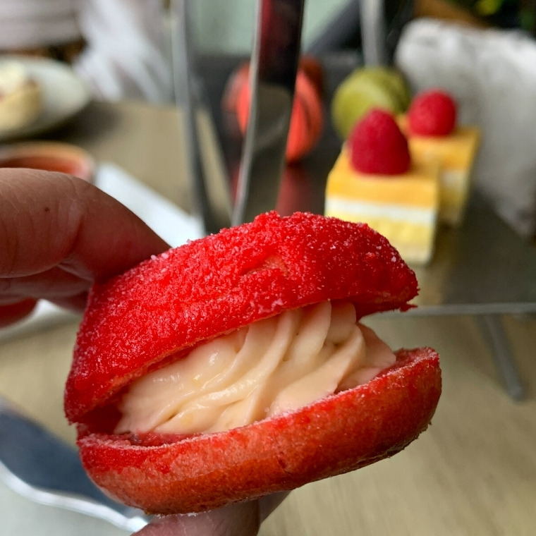 The sweet selection included a fruit tart with fresh strawberries, choux pastry with vanilla cream, friand with hazelnut cream, macarons, passionfruit slice and heart shaped bonbons. Again, all were perfectly executed and not overly sweet making for an enjoyable experience of afternoon grazing.
