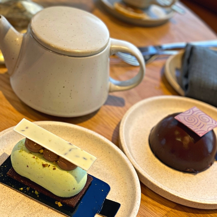 Now for the piece de resistance! Make sure you leave enough room to indulge in the cakes and pastries from the Marble Patisserie Bar. Eat at as many as you can handle! We shared the pistachio and chocolate roulade and the chocolate brownie. They were moist and delicately made. We squeezed in crème brulee, and the texture was exactly as it should be.