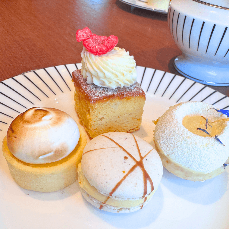 From the start, the staff are very attentive, and it’s not long before our table is adorned with two towers of delicate sweets and tasty savouries. One of our towers catered for the dietary needs of our party, and included an array of gluten-free and pescatarian treats.