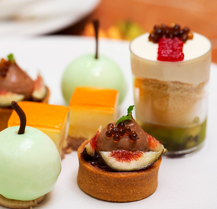 The entremet mandarine and chestnut followed. The mousse square was another very sweet inclusion with the highlight being the tangy mandarin jelly top. It was at this point I was looking for some calm after the two injections of sweetness and enter dish of the day, Pomme D’Aneth. This dessert was pretty as a picture, inside and out. Think perfectly shaped miniature apple complete with dark chocolate stork. Adding to that, the light Granny Smith Apple, dill and yoghurt mousse tasted like pure heaven. I finished up the day with la figue. I have to confess I’m not a massive fan of figs however, the other ingredients namely the hazelnut and caviar housed in the buttery shell complimented the sweetness from the fig.
