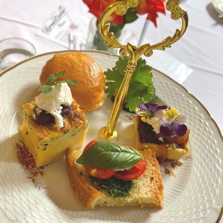 The Barossa Chateau High Tea was tasty, fresh and worthy of being on the plate. We started with the Tomato and Basil Pesto Crostini, which included fresh basil and tomatoes from the garden. You could taste the homegrown freshness. The onion jam tart was modern and tasty too.