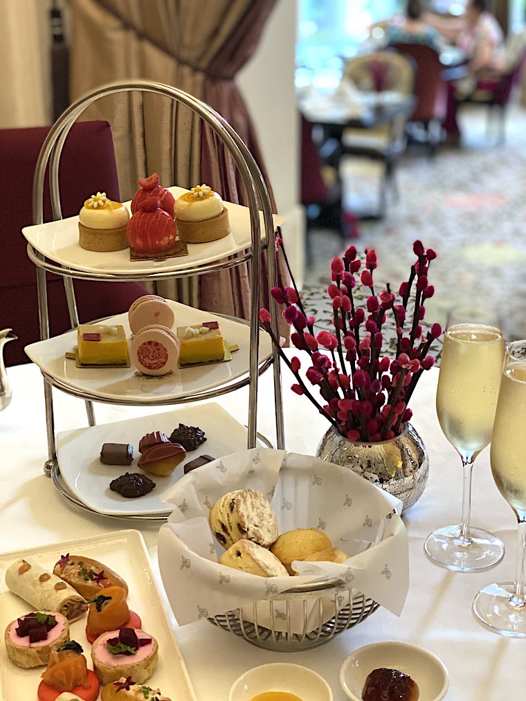 Choosing which tea to have is always the most challenging part. I went for The St. Regis Singapore Blend which was specially curated for the hotel which turned out to be exceptional! The tea was a mixture of black and green tea with white chocolate nodes. What I loved about it was that it was a well balanced mix of floral and fruity nodes, neither one overpowering the other. We also tried the Imperial Oolong which was fragrant and very smooth. In addition to that, we also opted for a glass of bubbly – Barons de Rothschild Brut NV Champagne, at a reasonable cost.
