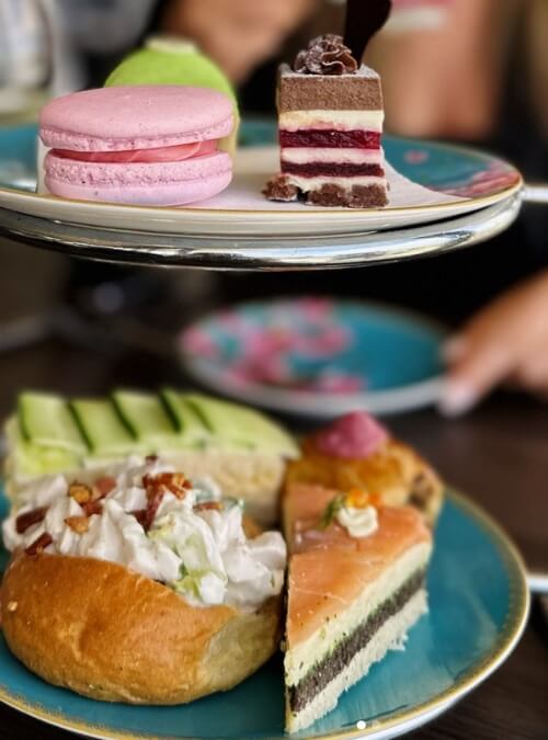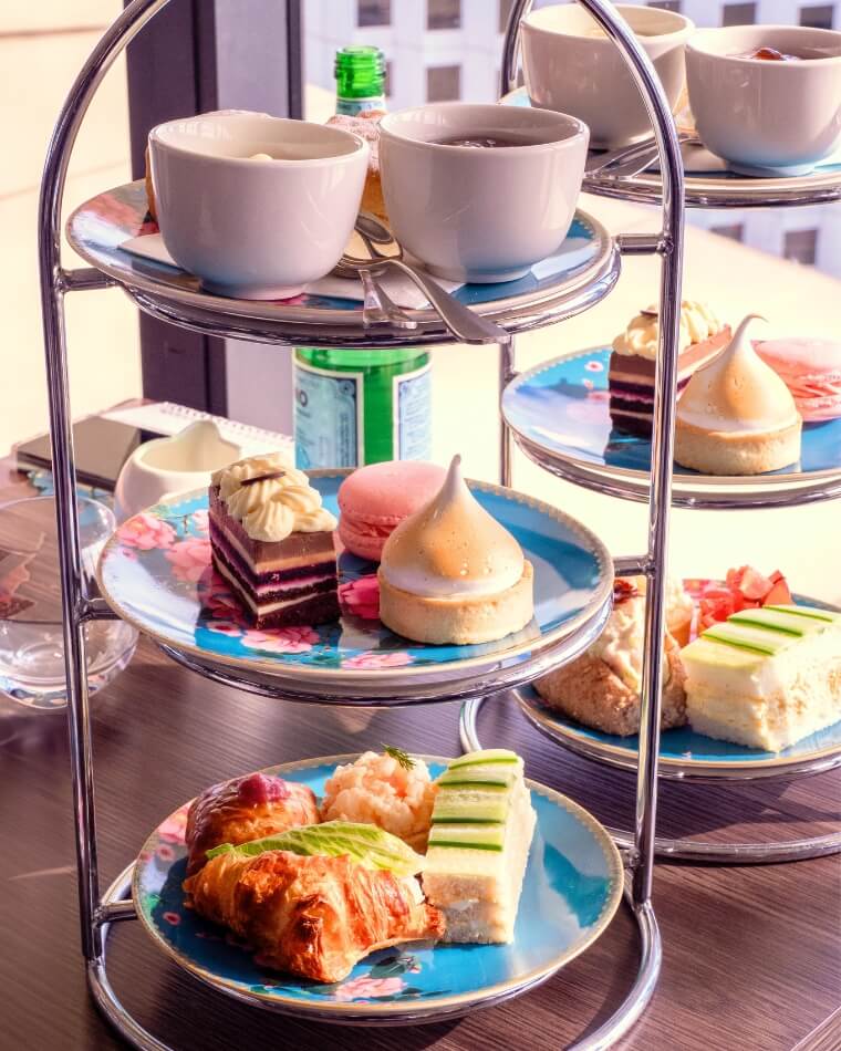 Once seated, I was offered a glass of Louis Roederer French Champagne to take in the breathtaking view before me. It wasn’t long before the three-tiered tower of sweet and savoury treats arrived at the table, and it was quite the feast for the eyes and the tummy.