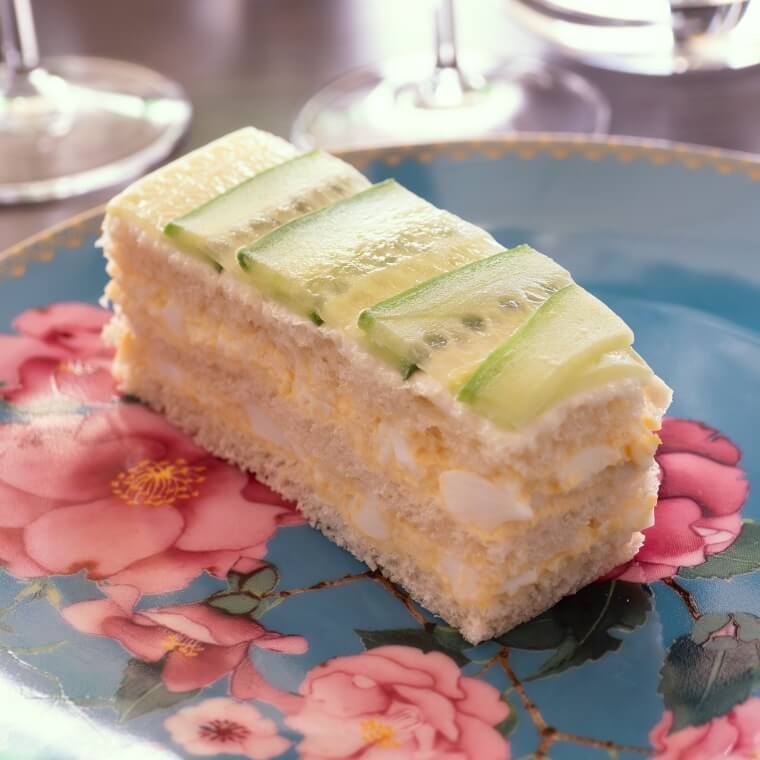 I opted to start with the wagyu beef sausage roll. Housed in a delicious, flaky pastry, the beef was beautifully seasoned and combined well with a generous dollop of tomato chutney on top, yum! Next up was the mini croissant with chicken breast, garlic mayo, lettuce, and capers. The French pastry was the perfect accompaniment for the generous, creamy chicken filling and iceberg lettuce. The prawn tart was a-mazing! The buttery shell married well with the lemony prawn filling, which also included crème fraiche, yuzu, dill, and salmon roe. This refreshing combination of flavours reminded me that summer is not far away. I finished up the savouries with the pretty as a picture egg and cucumber finger sandwich, which tasted as good as it looked. Extra points for the light, fluffy white bread.