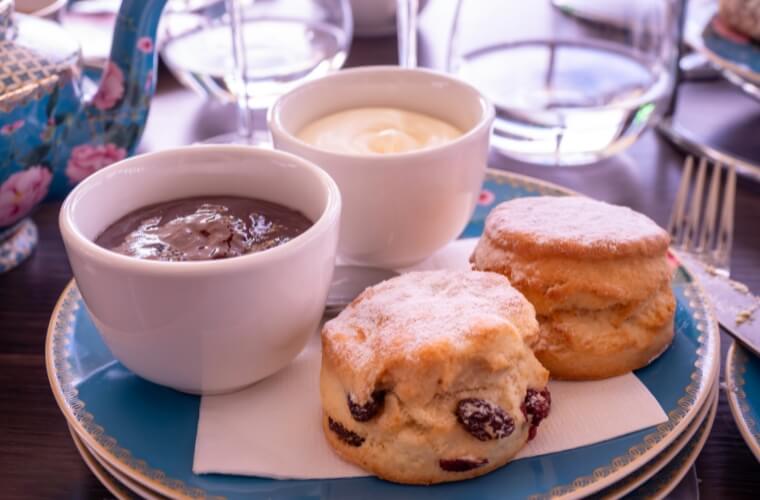 I then ordered a pot of the “Infuse Tea Company’s” peppermint tea to accompany the two scones, one fruit and one plain, on the top tier. However, there was nothing plain about either scone. They looked like they had just come out of grandmas’ oven and tasted just as good, crusty on the outside and light and fluffy on the inside. They were a treat with the strawberry jam and dollop of cream, which came with separate spoons, love that!