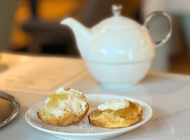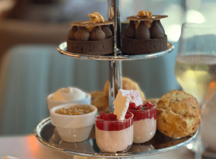 Served with tea with the option to add a glass of Chandon Brut or Rose.