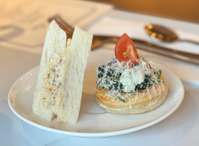 Then there’s the Danish filled with lavish helpings of spinach and ricotta encased in flaky pastry, followed by a very creamy truffle tamago (Japanese rolled omelette) sandwich.