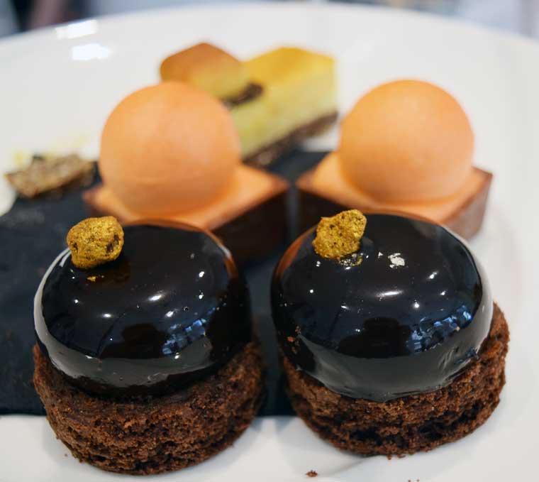When our eyes and tummies had been satisfied, our gaze lifted a tier up to view the sweet delights of the cake tray – what a work of art! We were spoilt for choice between a chocolate bombe, a popcorn slice, and a fruity, unusual blood orange pudding, which the imaginative chef had chosen to tease our taste buds with.
