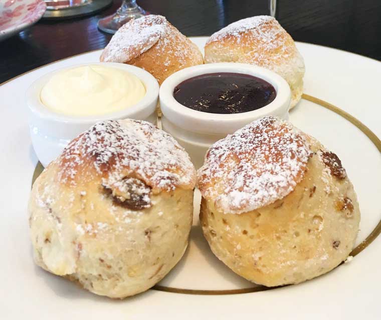 - Emporium blend tea-soaked sultana scones: Hedgerow jam, thick vanilla cream