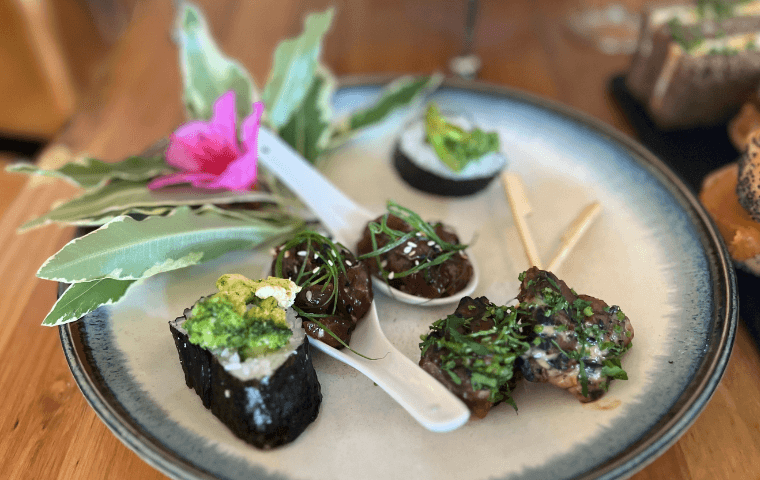 - Cucumber & avocado sushi with crispy broccoli (vegetarian GF option)