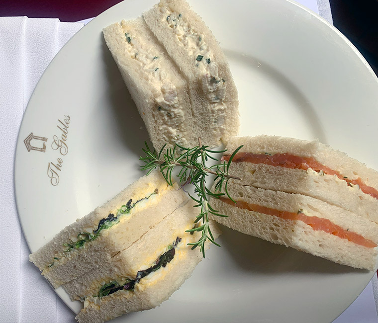 Today, The Gables is back serving high tea in-house, and it’s clear from the outset that this is a high tea people put their Sunday best on for. We are offered a glass of French champagne on arrival as well as a selection of teas and coffee.