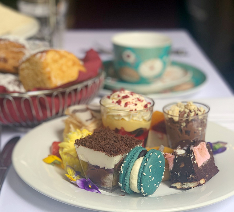 When the High Tea Society paid a visit, desserts included a macaron, tiramisu, panna cotta served in a chocolate cup, trifle, rocky road, vanilla slice and cheesecake, among others.
