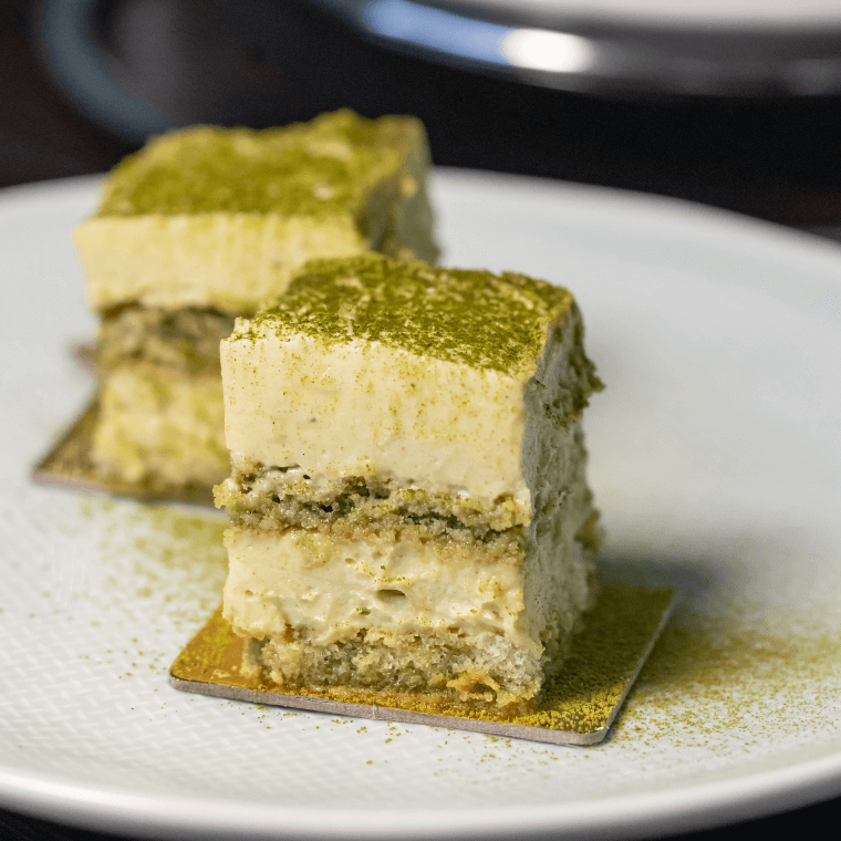 - Green tea-soaked Ladyfingers, Matcha Mascarpone layers