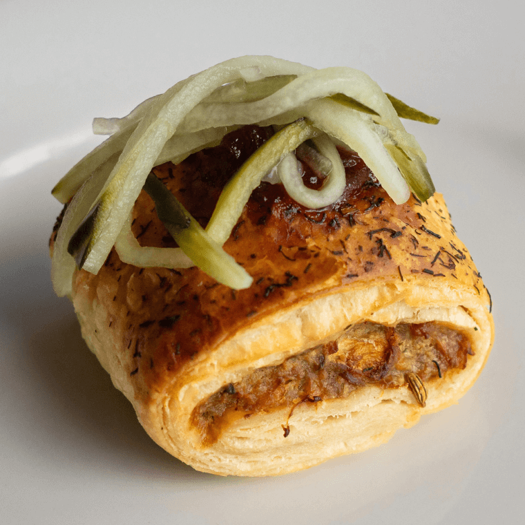 - Pork & fennel sausage roll, tomato & chilli jam, house pickle