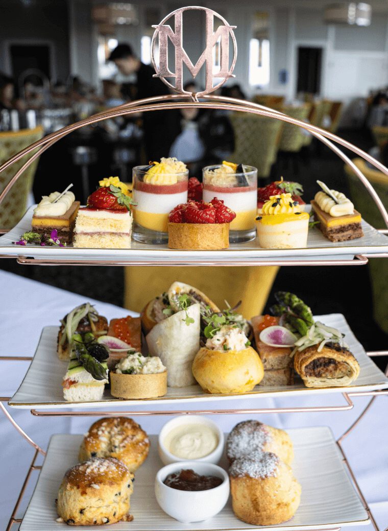 The new Louis Roederer High Tea menu is served in the Wintergarden. Enter through a stunning floral archway into a bright and welcoming room with floor to ceiling windows framing the spectacular view beyond. A pianist sits at her grand piano playing eclectic pieces across several decades – classical Metallica anyone?