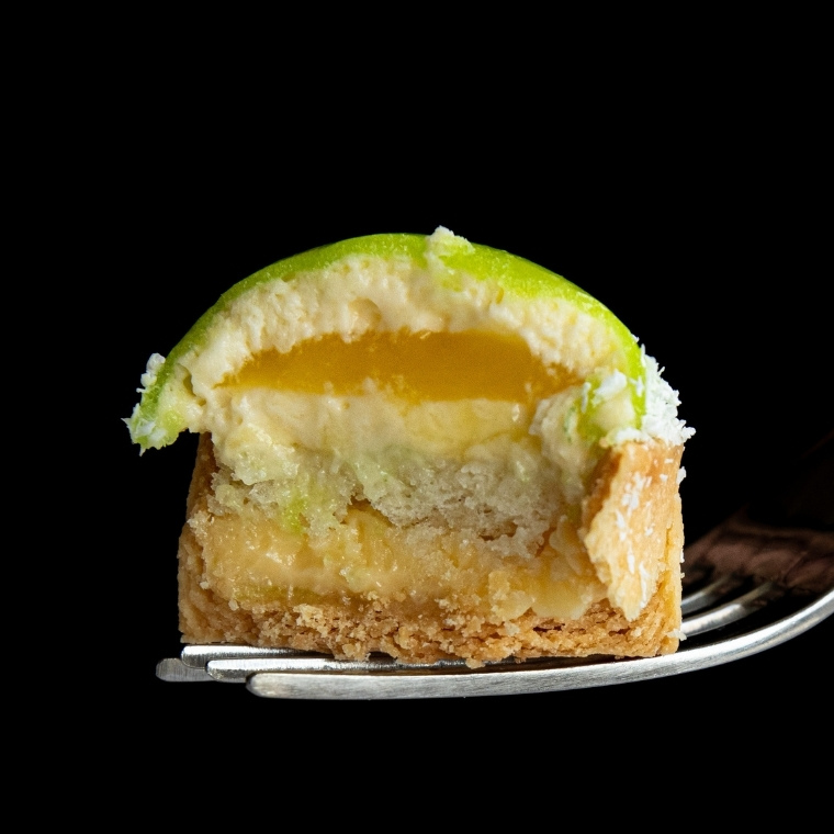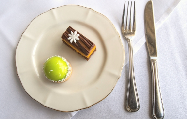 The sweets were an enjoyable mix of creamy versus tangy. The canelé was nice and caramelised on the outside with a soft vanilla centre. The choux bun was perfectly crisp with a creamy centre that didn’t soak in and make the shell soft at all. We had two clear favourites though – the tangy options. Firstly, the shiny green domed cheesecake was heavy on the citrus zing, slice it in half to reveal its varied layers of custards and gels. Then there was the dark chocolate passionfruit slice. The crunch from the dark chocolate base paired deliciously with the gel packed full of passionfruit punch. A real delight for the tastebuds and a great way to finish off the high tea.