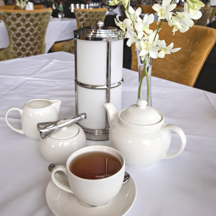 The room is just as bright and welcoming as ever (we last visited in 2015). Comfortable plush velvet chairs, crisp white tablecloths and fresh orchid flowers on every table. A grand piano tucked away in a corner with a pianist playing songs across several decades. The place was full to bursting with an assortment of guests ranging from hen’s days to baby showers to an 80th birthday – the whole spectrum of life events it would seem. We’re sure there’s been a proposal or two along the way as well.