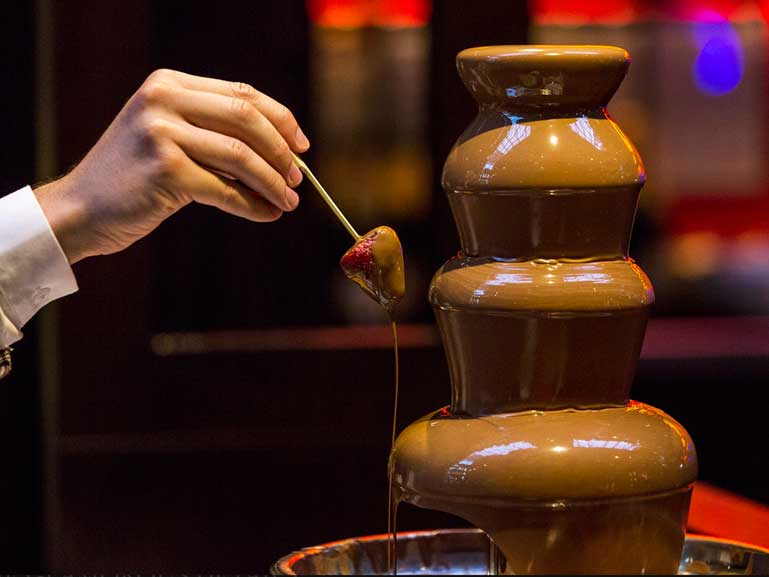 Sweet tooths will be further indulged by the inclusion of a dessert bar, complete with chocolate fountain and lollies served in cereal canisters.