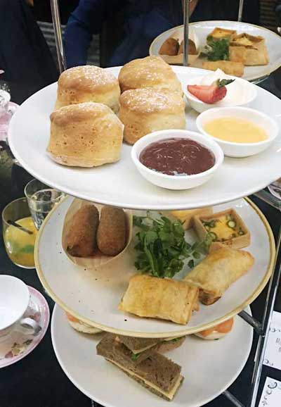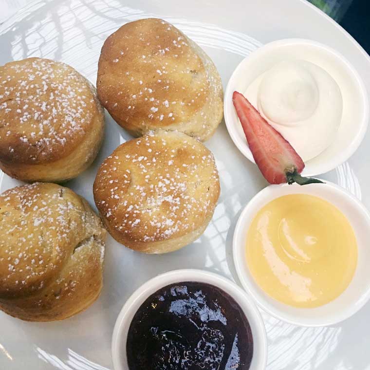 - Freshly baked buttermilk scones with Darbo jams, lemon curd, double cream and a selection of sweets