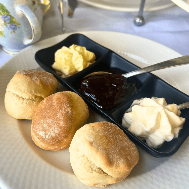 - Freshly baked signature scones served with Yarra Valley three berry jam, vanilla chantilly cream and saffron cream