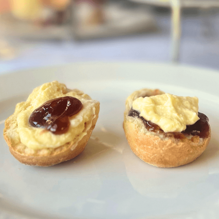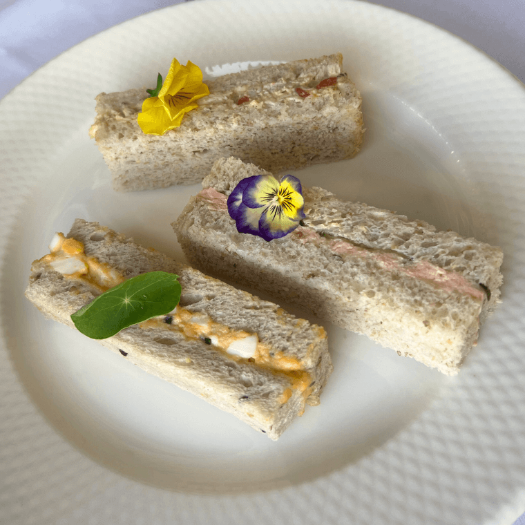 Set on a traditional three-tier stand, the beautifully presented finger sandwiches set the tone, with the chicken with celery and capsicum a clear highlight, followed closely by the egg sandwich with chives.