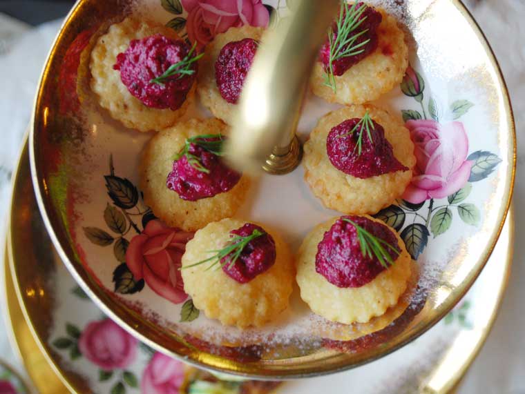 - Parmesan shortbread with beetroot pesto