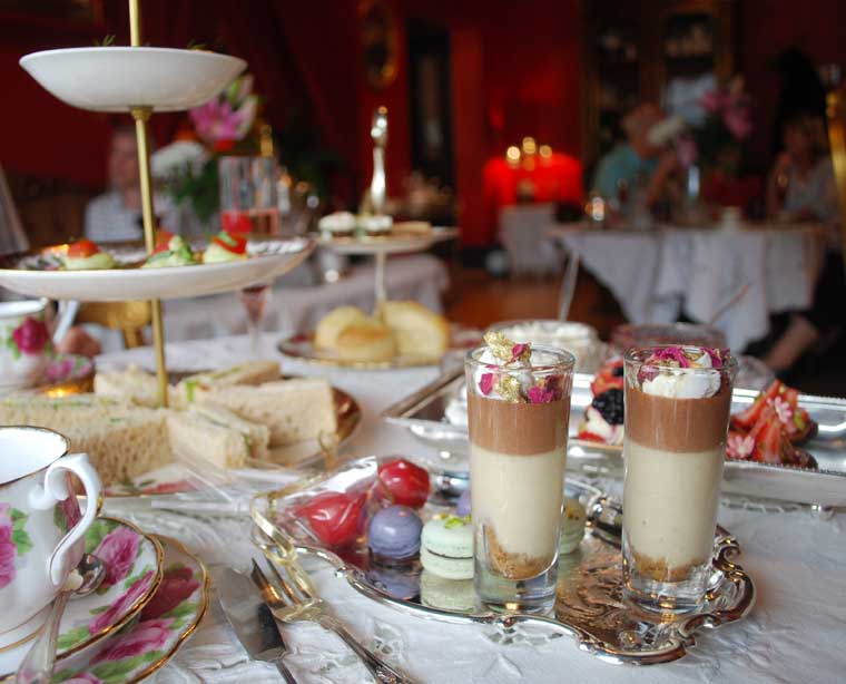 With its red and black velvet curtains, crystal chandeliers, antique baroque furniture, mismatched fine bone china and petite silverware, high tea at Mamor is a truly decadent experience.