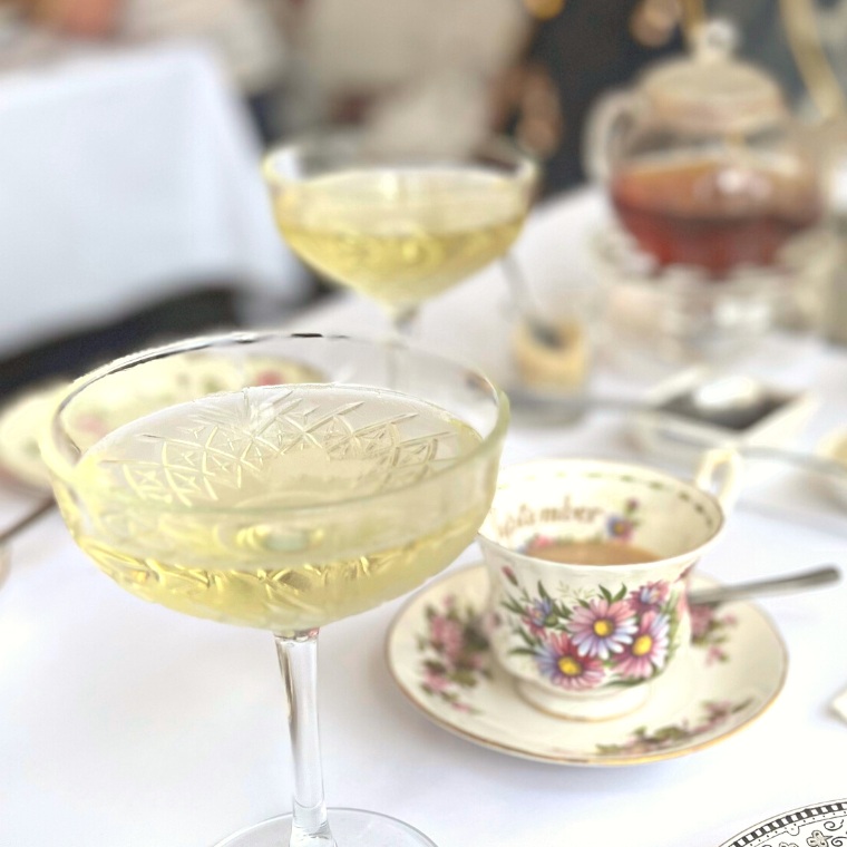 There’s also a signature Mary Eats Cake gold cake stand waiting to be filled, linen tablecloths, crystal coupe champagne glasses and a pot of English Breakfast tea brewing on our table when we arrive.
