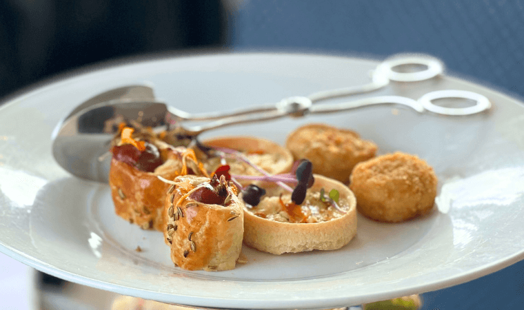 If you’re looking for something a little tamer, the buttery pastry of the feta, carrot and dill quiche is also a winner. The desserts on top include a variety of traditional high tea elements with a twist – including a rather delightful apple and kiwi opera slice and a marshmallow pop featuring white chocolate.