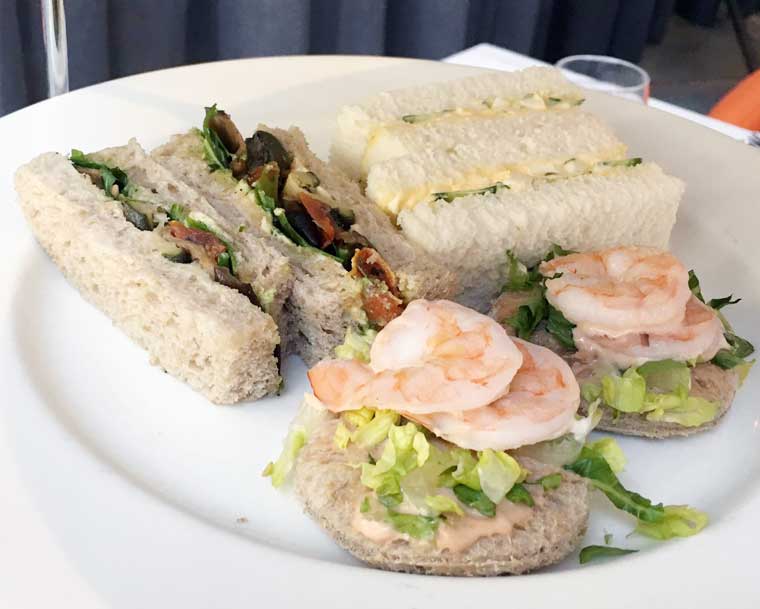 The sandwich selection continued on the middle layer with a trio of freshly made sandwiches boasting generous fillings of egg & cucumber, marinated vegetables and little prawn bites. They were all freshly made and filling.