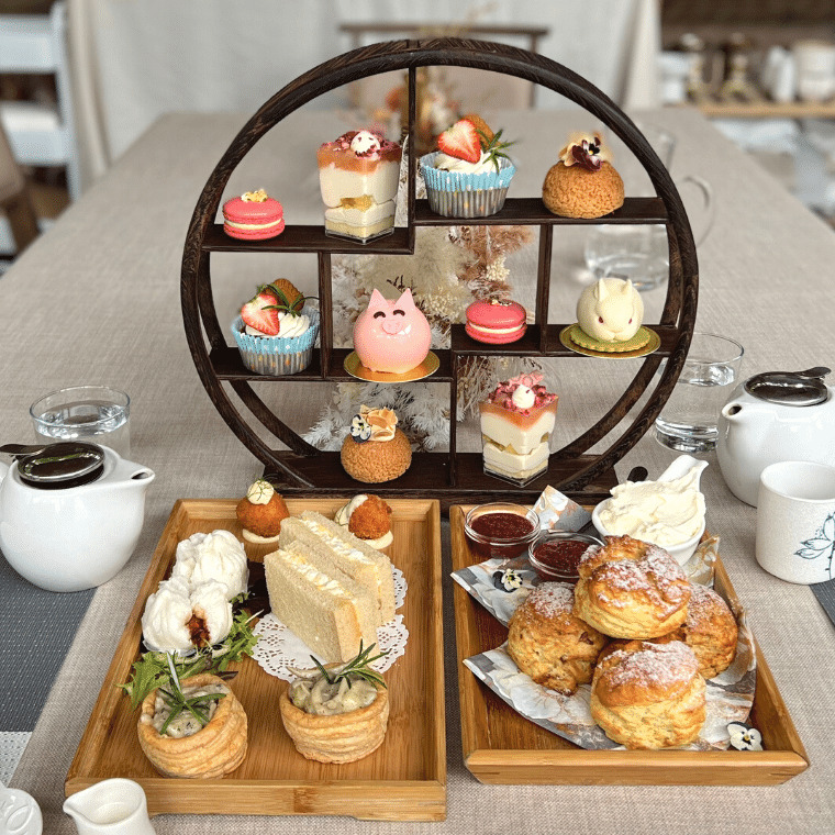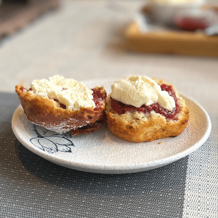 At this point our host Zoelle checks in on us and I’m in need of more tea. She recommends the Milky Oolong-flavoured tea, and it arrives just in time for our final course of Scones with Jam and Cream.