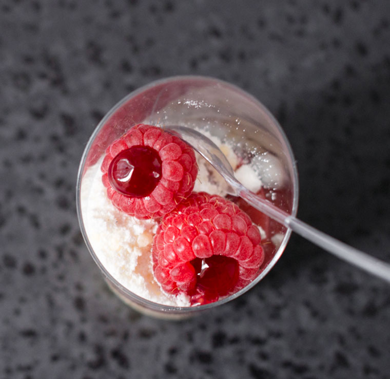 - Glazed lime cheesecake, raspberry centre & spiced shortbread