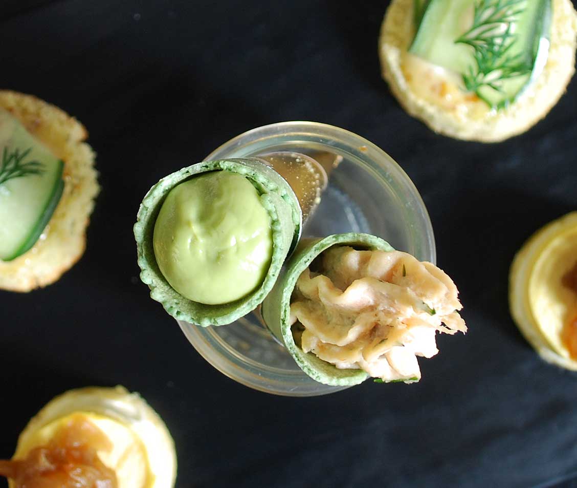 The stand did not disappoint, with every sweet item being beautifully made. The Granny Smith panna cotta, served in a small clear tube, hit that sweet spot (pardon the pun!) of being both nostalgic and fresh. The panna cotta itself was smooth and full of vanilla bean, and it was topped with a bright apple gel and just a sprinkling of zingy popping candy. My favourite item on the menu though, was definitely the chocolate, passionfruit and salted peanut dome. The caramelised chocolate paired so well with the punchy passionfruit filling, and the sweetness was offset by a salty peanut crumb.