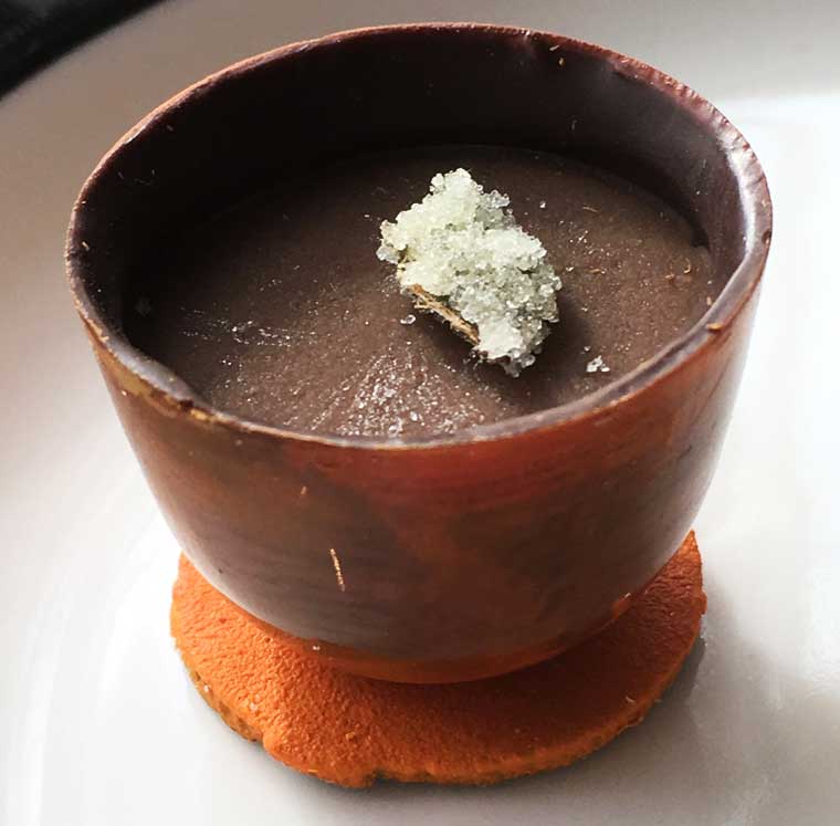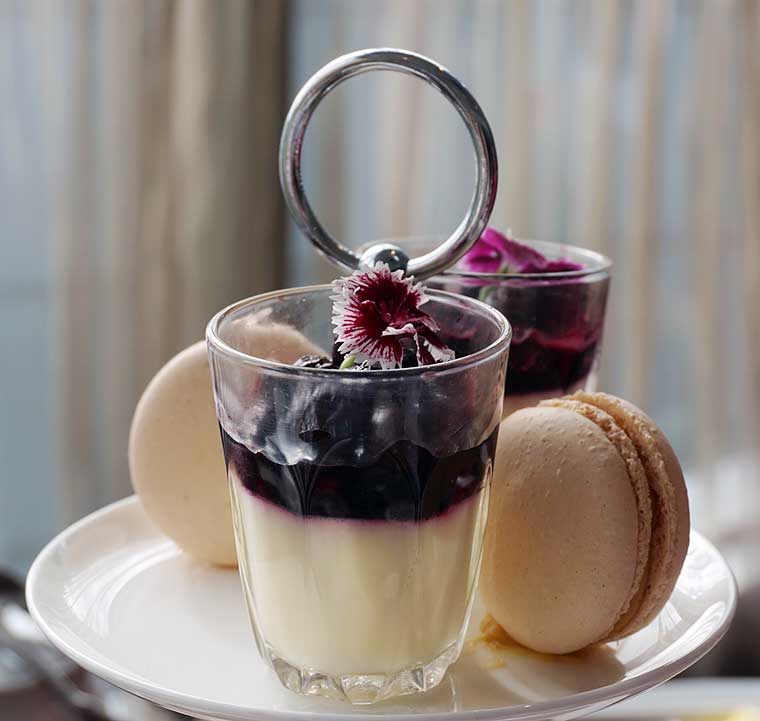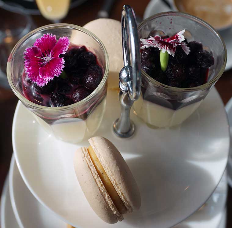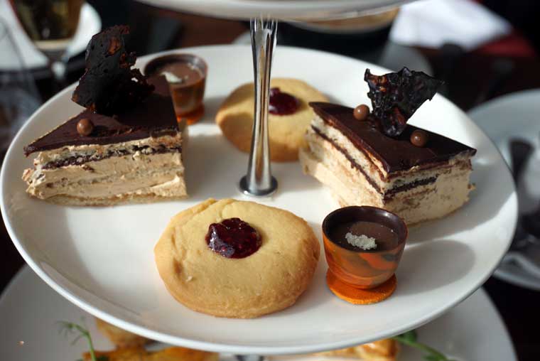The sweet layers were also delicious and of a high standard. We started with the Cinnamon Palmier which was a great jump to the sweet side. Next the Indian influenced Shrewsbury Jam Cookie was consumed and it was particularly buttery, short and oh so good. Indian flavours were also represented in a very delicious and perfect balanced beautiful Chai Chocolate. The Opera Gateau and the pretty Blueberry, Vanilla and Thyme Verrine were excellent. To finish we had the generously sized and perfect Salted Caramel Macaron.