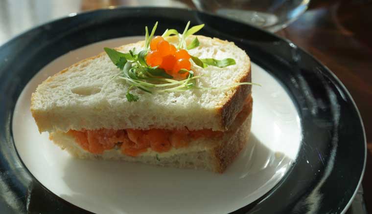 - Ora King Salmon, chive cream cheese on house baked white bread