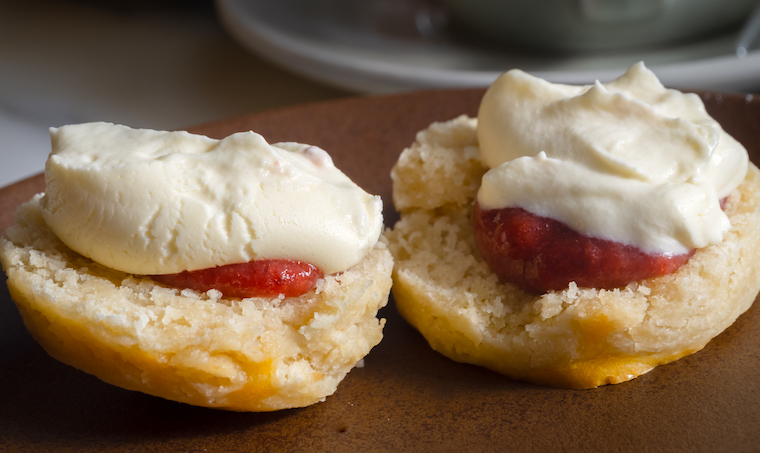 - Buttermilk scone, whipped vanilla cream, strawberry jam