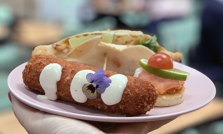 - Savoury treats including the fish taco with chard corn salsa & chipotle mayonnaise, cheese croquette with truffle mayonnaise and smoked salmon pikelet with dill cream