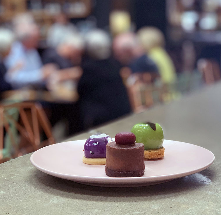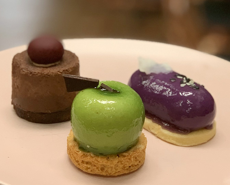 - Sweet treats including the Apple Mousse with Hazelnut Breton, Ube Mousse with Black Sesame Crunch and a Chocolate Mousse with Raspberry Pebble.