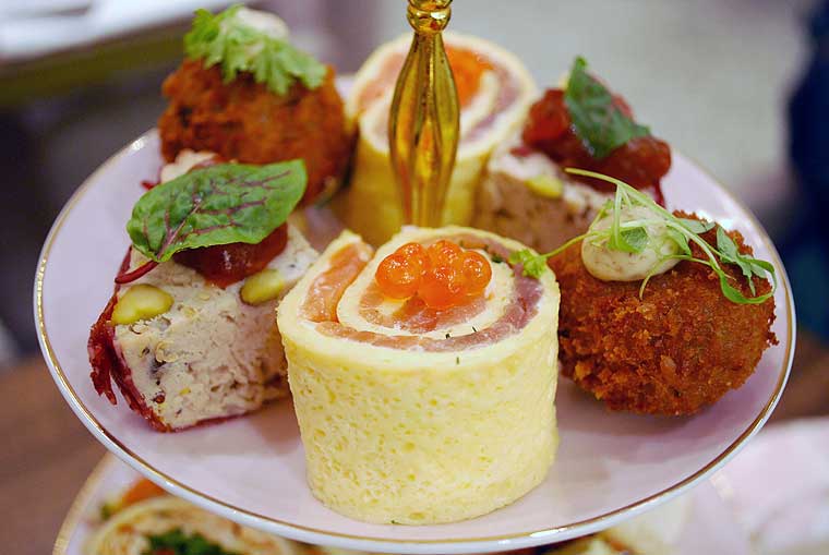 The savoury items were the highlight for us. The semi-dried tomato and mushroom arancini balls were absolutely divine, with a textured crunch on the outside and the soft flavoursome filling, coupled with truffle mayonnaise, they were faultless. The inclusion of both hot and cold canapes ensured variety and certainly caters to different tastes and palettes. The salmon and egg roll with salmon caviar had an unusual texture, but the cold canape was perfectly balanced and a surprising delight.
