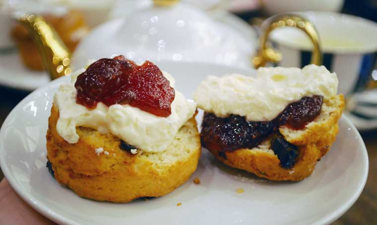 - Orange blossom scones with jam and Chantilly cream.