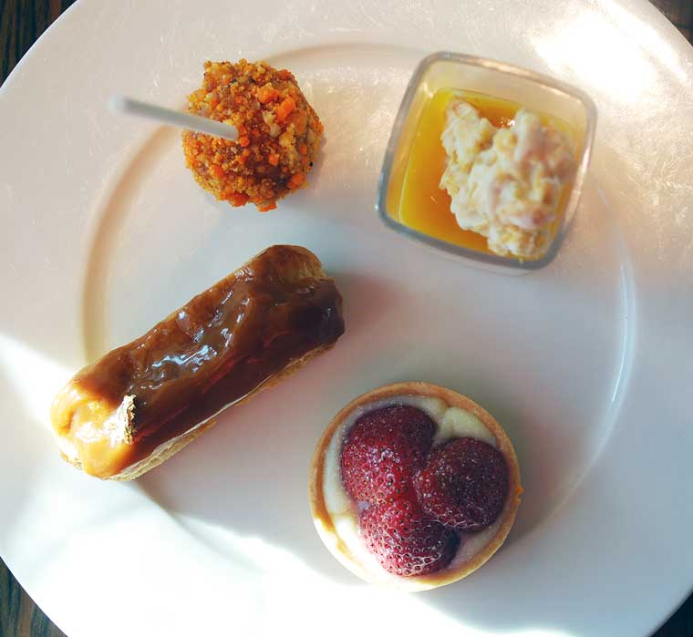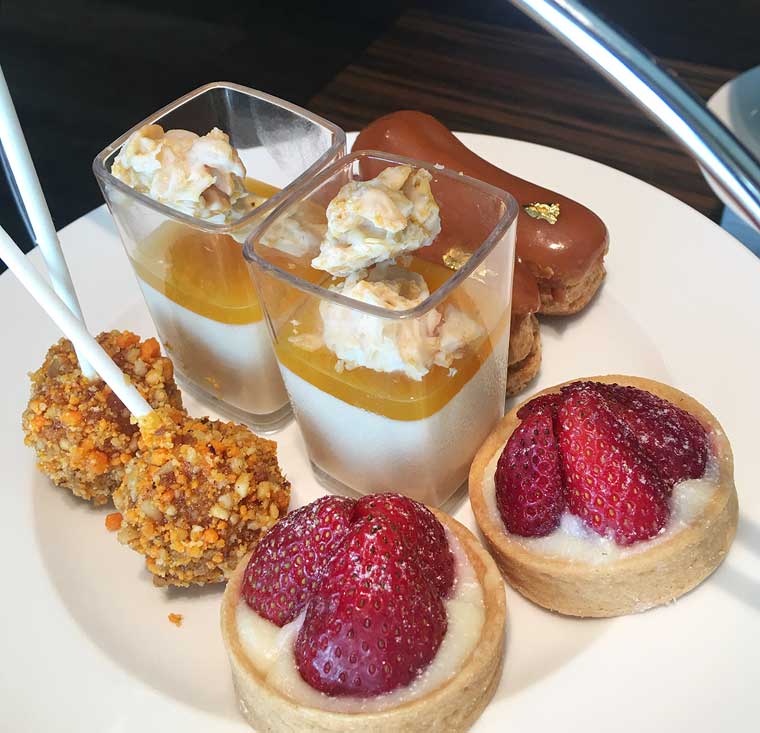The sweets were all well made and it was quite refreshing not to have anything chocolate-based and finally we didn’t have to eat a mini cupcake (again if you’ve been following my reviews, you’ll know my distain of the children party treat on a high tea menu!) Instead we had a passionfruit pot which was a nice balance of rich and tangy. The carrot cake pops were a bit of fun thrown in, but my favourite was the petite coffee eclairs. The choux was still crisp and the filling had a subtle hint of coffee, nothing too overpowering to obliterate the other flavours around it.