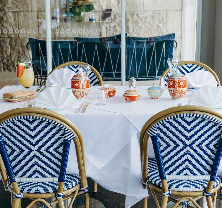 It’s downstairs at The Galley Kitchen where High Tea is served on the terrace overlooking the marina. The table is beautifully set with colourful tea sets adding a sense of celebration to the convivial scene.