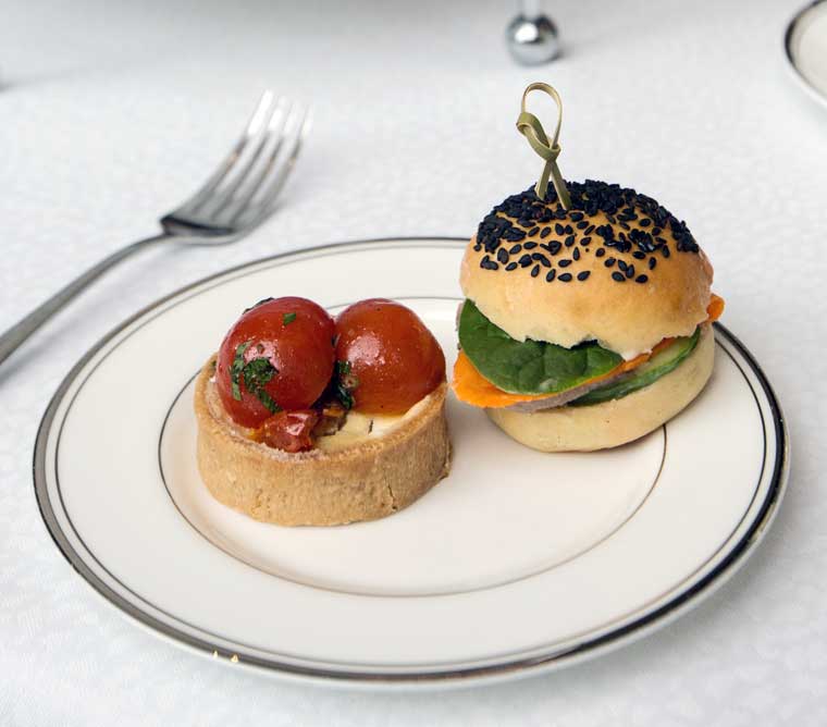 Still hosted in the Lobby Lounge, the room is a mix of couches with coffee tables for large groups, and smaller tables with armchairs for a more intimate setting. All of the tables are fully set on arrival, which is a nice touch as you walk through the room. Fresh flowers floating in vases, white tablecloths, silver trays holding sugar bowls – which have both raw and white cubes – the place is an inviting space to be in.