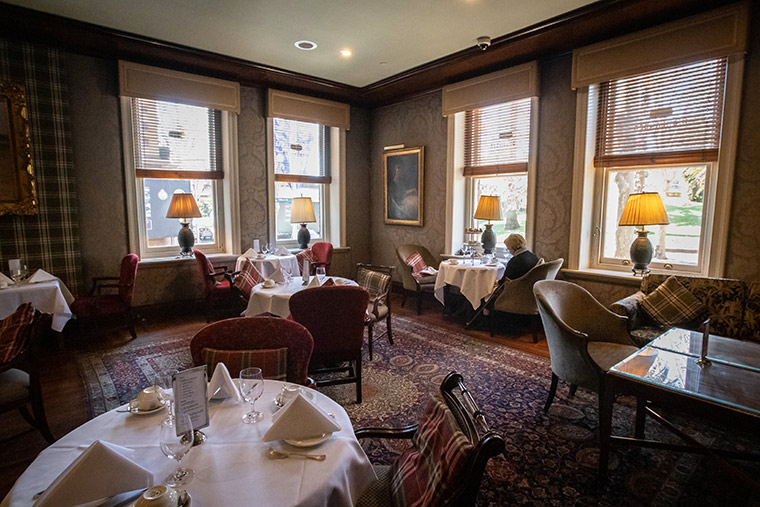 The Highlander Whiskey bar houses a glittering selection of sparkling bottles behind the wood panelled bar. The rest of the room is an array of tables set with white tablecloths, antique chairs with throw cushions for cosiness, several old-world artworks and a baby grand piano. The whole vibe is that of a British manor’s state room, very Downton Abbey-esque which fits perfectly with the more traditional high tea being served.