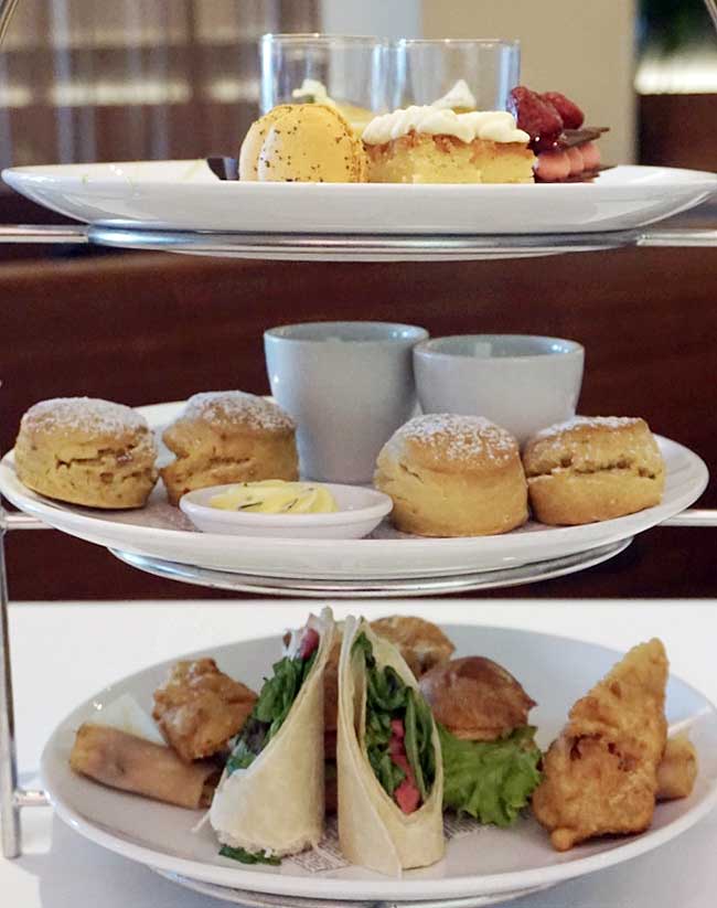 The High Tea was the traditional savoury bottom, scones and sweet top tier. Sandwiches did not feature on the stand at all. Other savoury delights did and we enjoyed these. With the quality of the savouries I can’t say that I missed the sandwiches. Although it would have been nice to have some accompanying chutney or relish with the savoury layer.