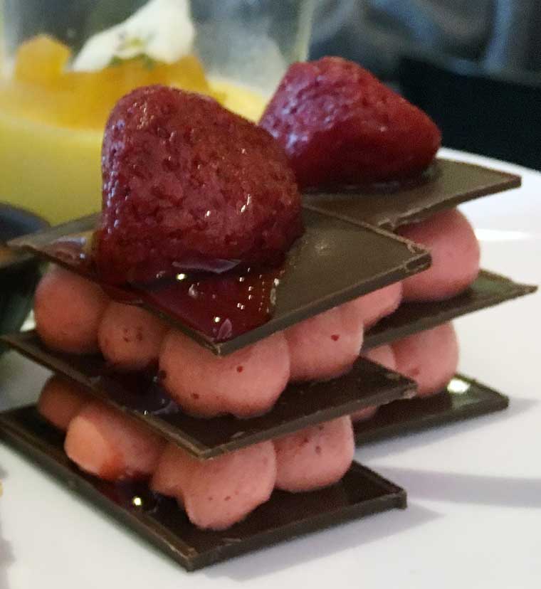 The savoury layer was the star for us. I found this refreshing and enjoyed the global savoury offerings. We were both particularly taken with the unusual fusion of the Inari Pocket which was filled with roast tomato risotto and mozzarella. The Peking Duck roll was a perfect thickness and filled with delicious duck. The chicken and asparagus pie was encased it perfect pastry and I could have easily eaten on as a main meal and been happy. Both the Hot Smoked Salmon slider and Roast beef wrap were good but could have done with more sauce/dressing. Overall, this was an impressive and filling savoury selection and different from the norm.