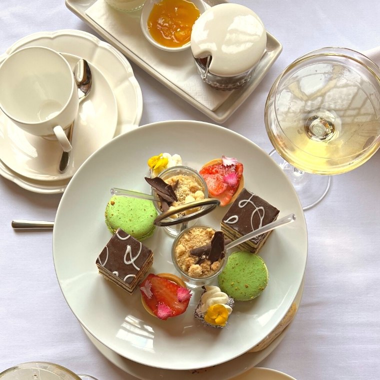 The high tea soon follows and is served on a two-tier stand, with scones delivered fresh from the oven on a side plate, their delicious aroma wafting enticingly in the air.