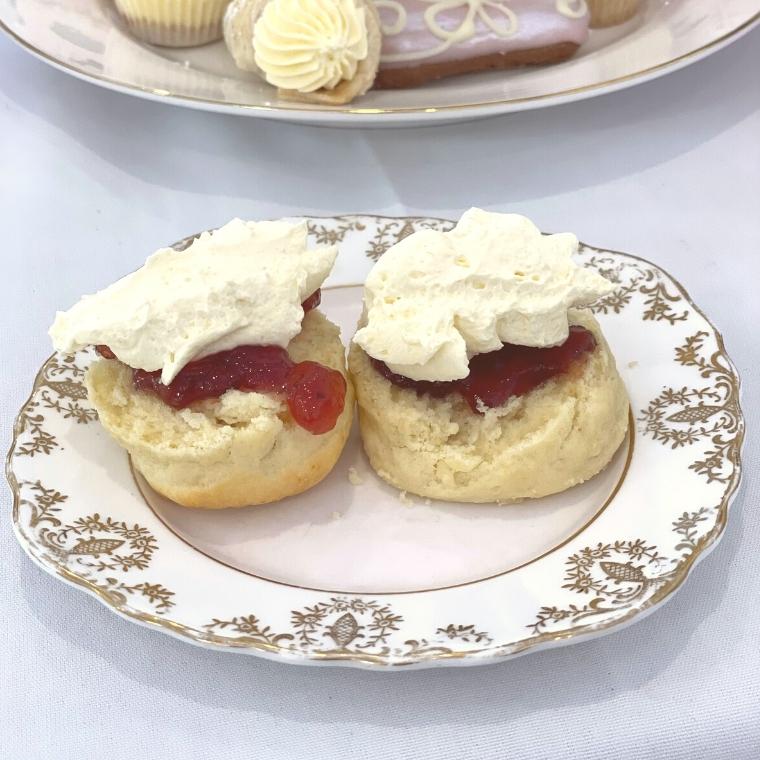 The scones were light and tasty. The jam was like pure fruit and the cream was fluffy and luscious.
