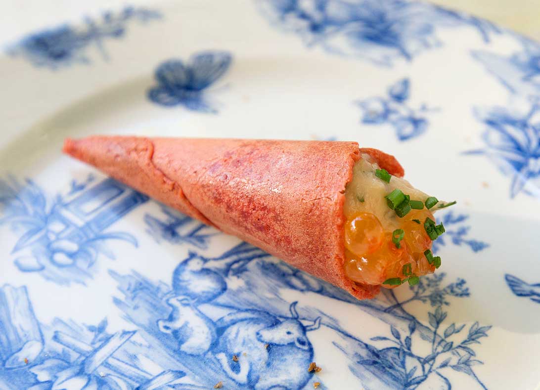 - Salmon & Herbed Cream Cheese Cornet with Keta Caviar