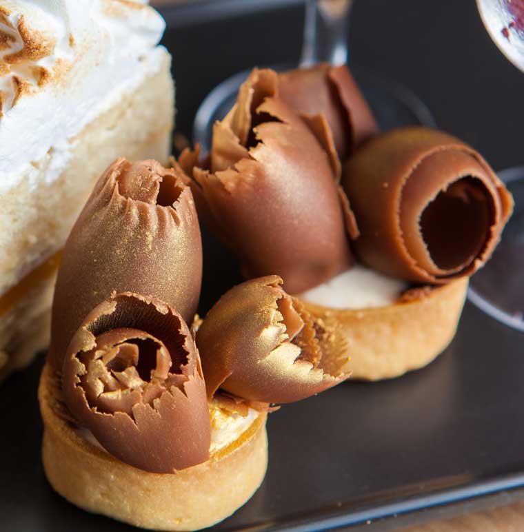 With great excitement we progressed to the sweet selection, a collection of treats bursting with colour and fun. Today’s selection included a chocolate tart topped with curls of chocolate, walnut fancier, lime macaron with honeycomb, berries and cream and last but not least apple and custard roulade. The sweet selection was all perfectly balanced, with no one dessert being too sweet.